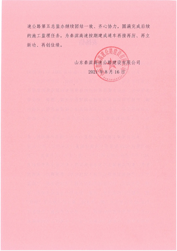 監(jiān)理中心穩(wěn)步推進(jìn)秦濱高速漳衛(wèi)新河建設(shè)項(xiàng)目,獲秦濱高速建設(shè)有限公司感謝表揚(yáng)