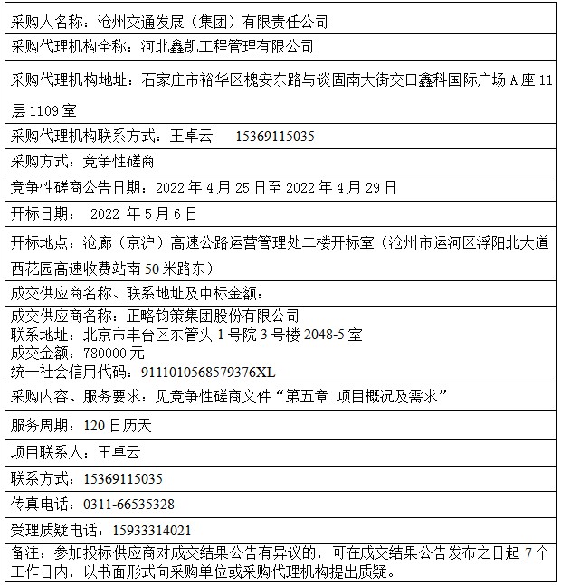 滄州交通發展(集團)有限公司企業內部控制及風險控制咨詢成交結果公告
